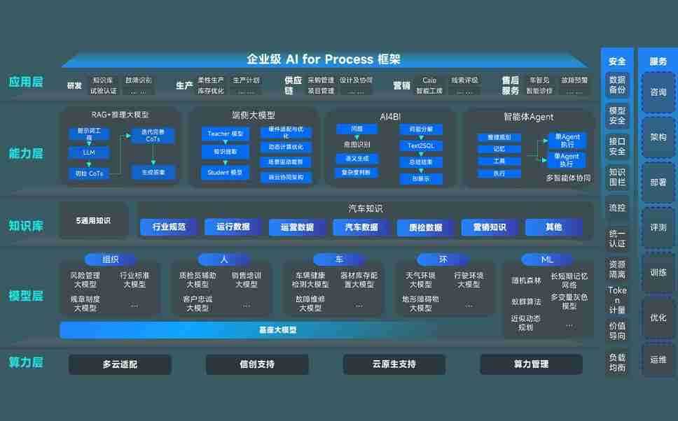 端到端的一站式AI工作空间深度融合了从企业战略规划到日常经营的全流程业务板块,,,定向解决车企内部领域多、、、、部门多、、、、链条长、、、、场景碎片化等难题,,,,支持车企快速构建以AI为核心的生产力写作体系,,实现任务执行与AI能力的无缝集成与交互